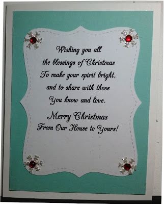We will each make a sample Christmas card that features a technique the others have not tried. We will take a plastic "shoebox" full enough materials and the tools needed for the others to make our particular sample technique card. It's so nice to meet and get to know others who enjoy the same hobby that I do. It should be a fun day!